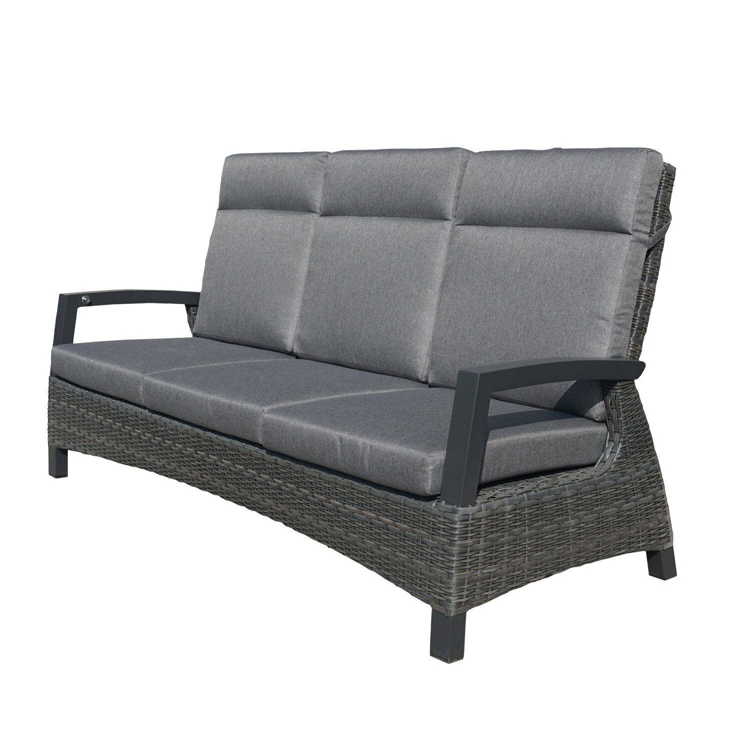 Lissabon 3-zitsbankMet de Lissabon 3-zitsbank krijgt deze set een royale zitplaats die goed past bij ontspannen buitenmomenten. Met een antracietkleurig aluminium frame, een antracietkleurig wicker afwerking, een wicker afwerking en grijs polyester bekleding krijgt dit onderdeel een uitstraling die goed past bij intensief gebruik in tuin of op terras. Ook praktisch is een verstelbare rugleuning en afmetingen van B 206 x D 87 x H 103 cm.