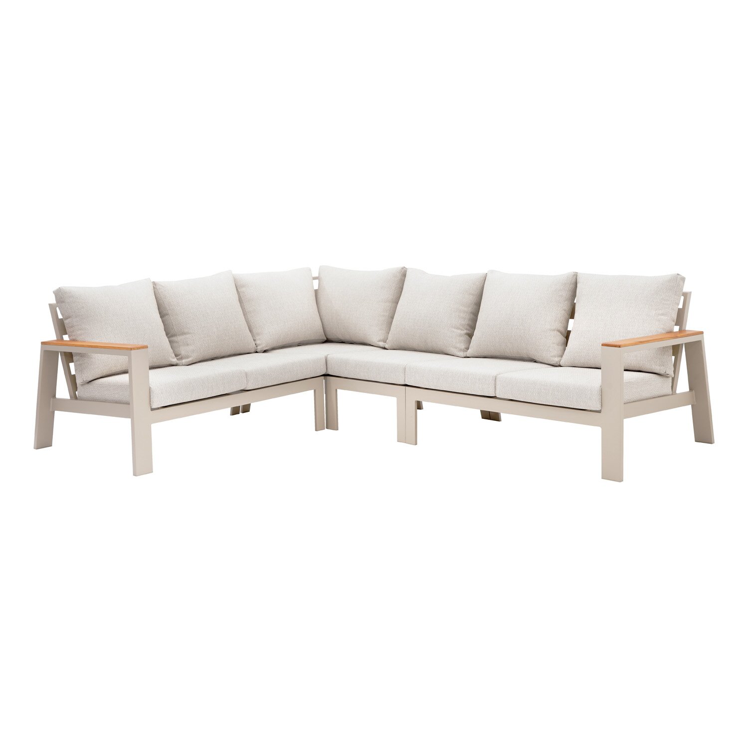 Deze hoeklounge is vervaardigd uit aluminium en heeft een stevig aluminium frame. Dit zorgt niet alleen voor een luxe uitstraling, maar ook voor een lange levensduur. Aluminium is gekozen vanwege zijn robuustheid en onderhoudsvriendelijkheid, waardoor je jarenlang kunt genieten van dit prachtige meubelstuk zonder veel inspanning.