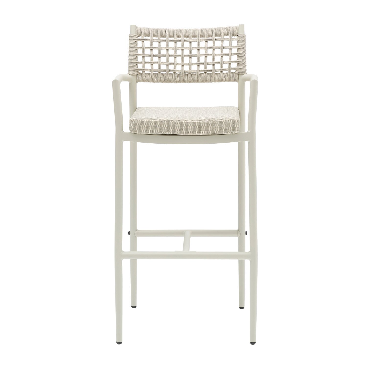 De Liv barstoel zand van Ease up® combineert modern design met comfort en duurzaamheid. Het aluminium frame in combinatie met een rugleuning van touw geeft de stoel een natuurlijke uitstraling, terwijl het lichte polyester kussen extra zitcomfort biedt. Deze barstoel is perfect voor hoge tafels, bartafels of een trendy buitenbar op je terras.