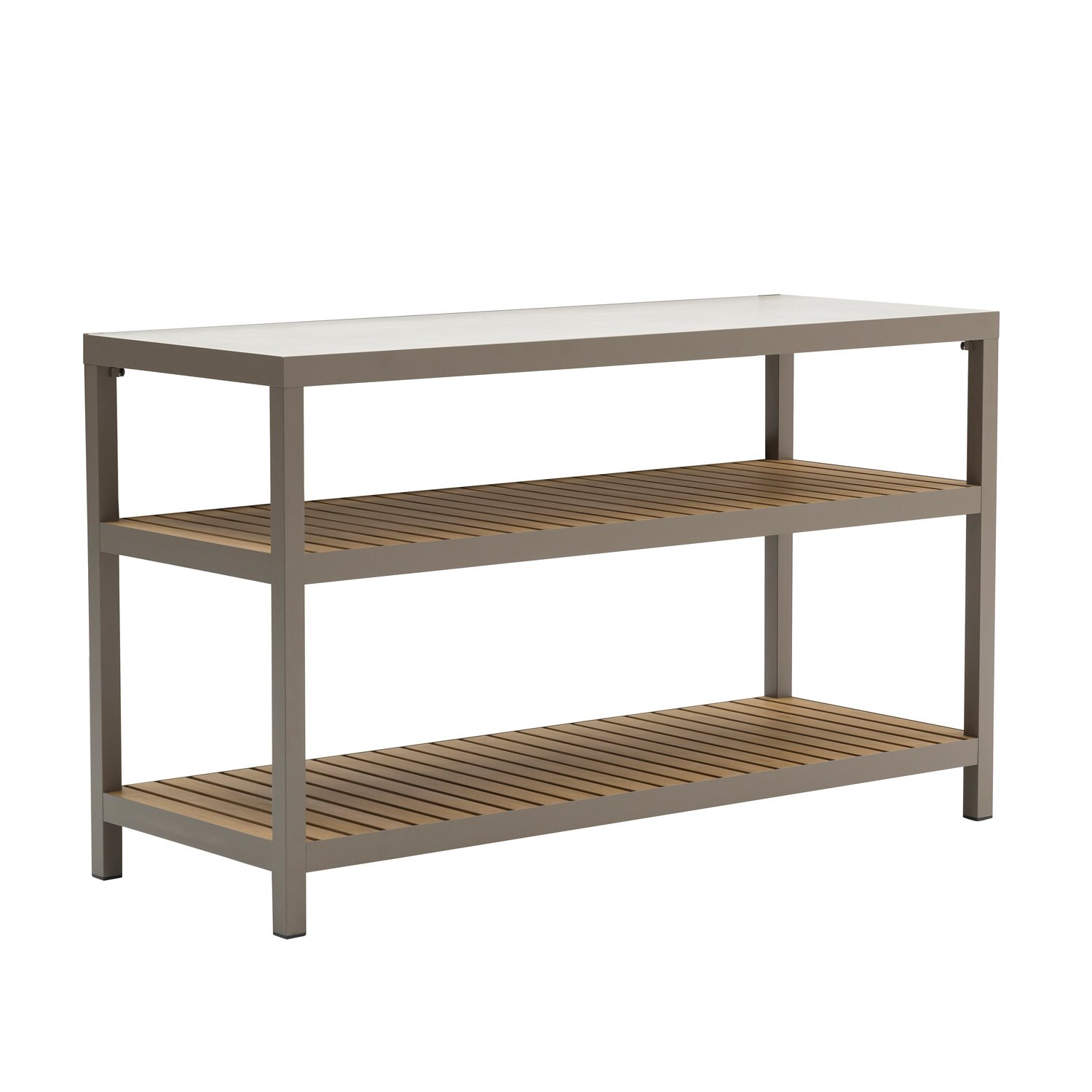 De Bolzano buitenkeuken kast 2 laags L160 x D60 x H95 cm espresso van Ease Up is een stijlvolle en praktische basis voor jouw buitenkeuken. Deze hoogwaardige buitenkeukenkast is volledig vervaardigd uit duurzaam aluminium, waardoor hij licht van gewicht, sterk en volledig bestand tegen roestvorming is. Aluminium is een ideaal materiaal voor buitengebruik omdat het weinig onderhoud vereist en uitstekend bestand is tegen verschillende weersomstandigheden, zoals regen, zon en temperatuurschommelingen.