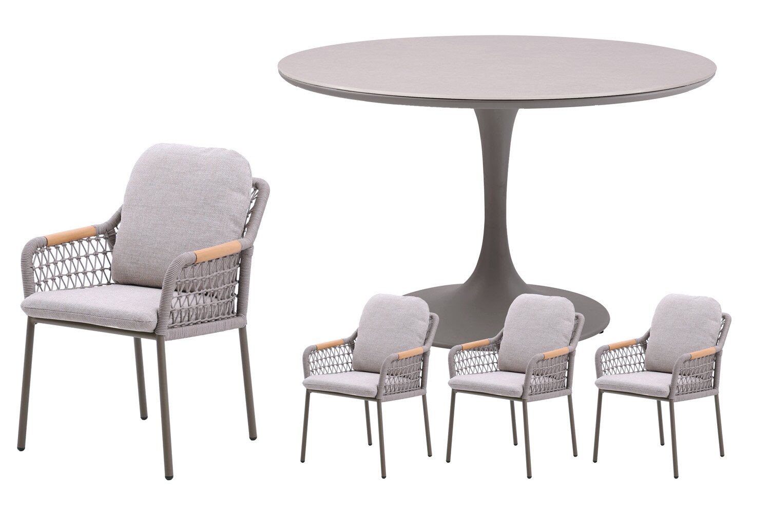 Royal seasons® Bari ronde dining set voor 4 personen is verkrijgbaar bij onze exclusieve dealers. Royal Seasons biedt u een uitgebreid assortiment tuinmeubels van hoge kwaliteit. Voorheen kende u Royal Seasons als Seat Tuinmeubels. Deze naam voeren wij sinds 2016 niet meer actief: u zult dus alleen nog Royal Seasons tegenkomen in onze showrooms. Seat Tuinmeubels verdwijnen vanaf 2017 helemaal uit onze showrooms.